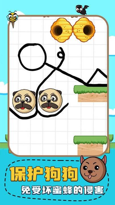 2.全力阻挡蜜蜂,不让它们伤害小狗,保护可爱的狗狗成为你的首要任务。