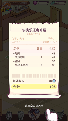 3、当客人到达时,点击桌上的图标即可为他们上咖啡。