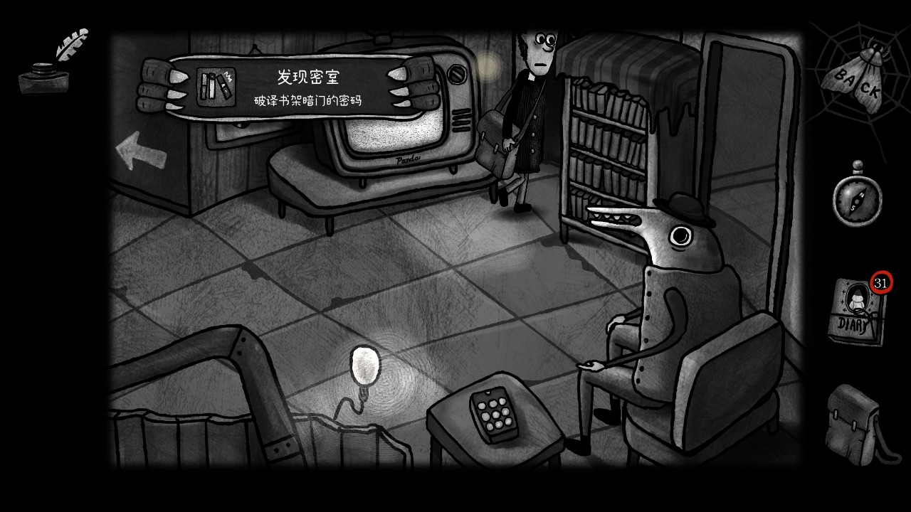 黑白手绘风格:与大多数游戏采用鲜艳色彩不同,游戏使用了黑白素描风格,这种设计不仅为游戏增添了浓厚的恐怖氛围,还使得每一帧画面都充满了艺术感。细腻的画面与背景音乐相得益彰,让玩家在解谜过程中深深沉浸其中。